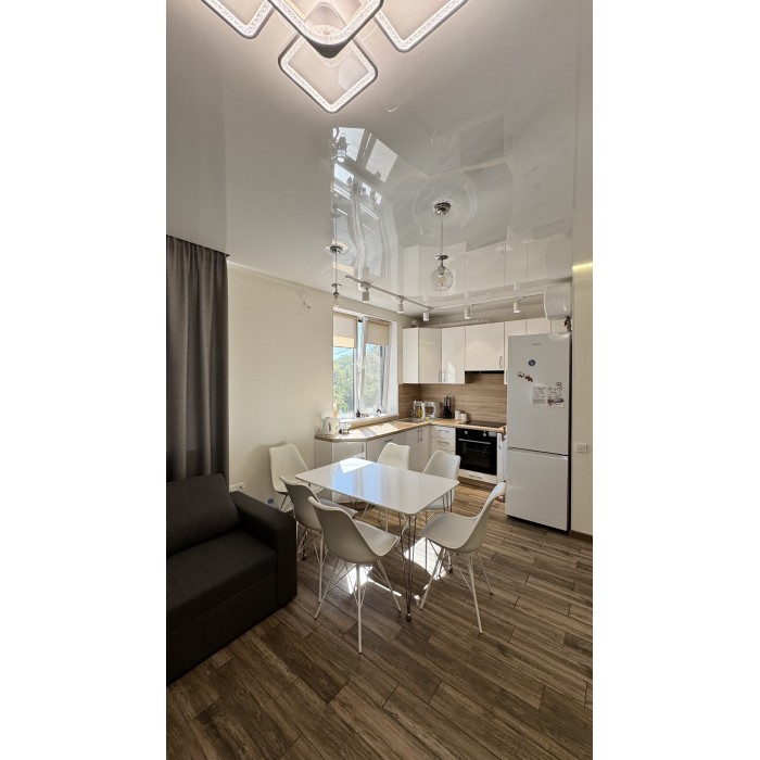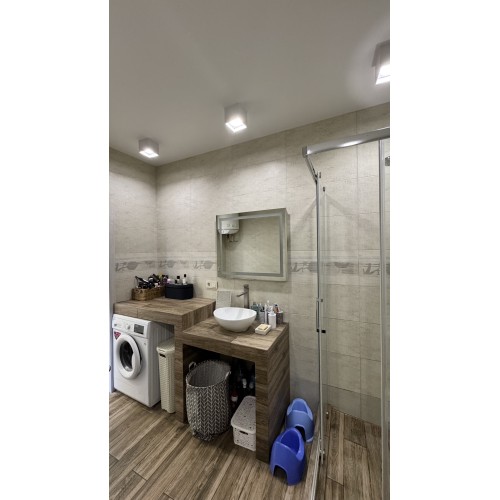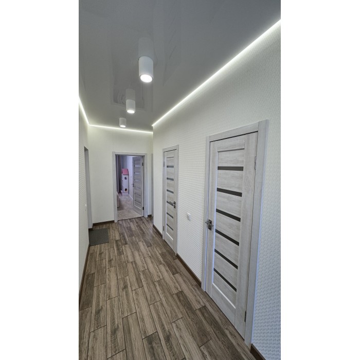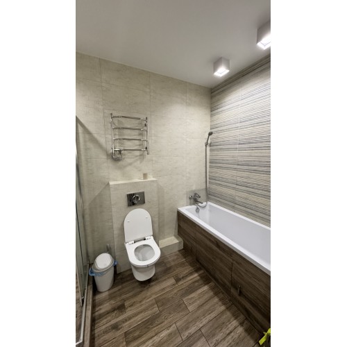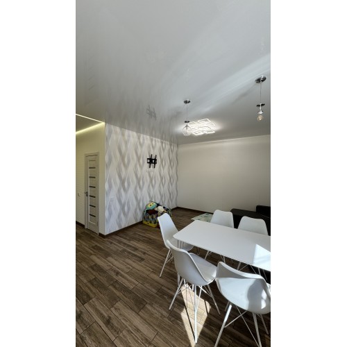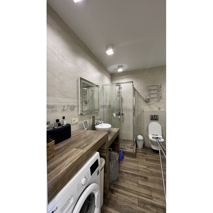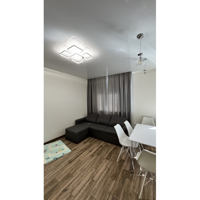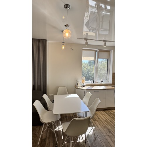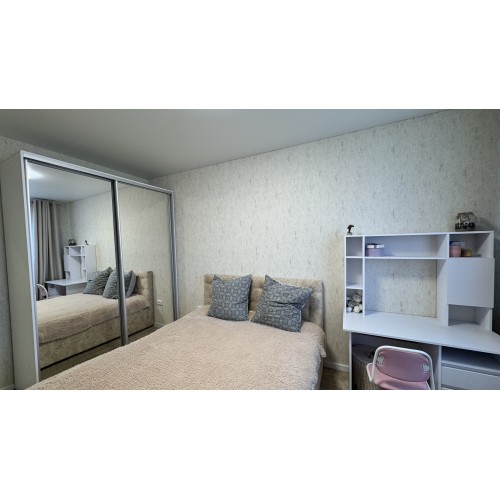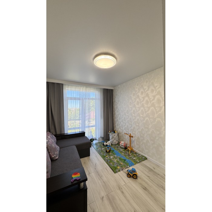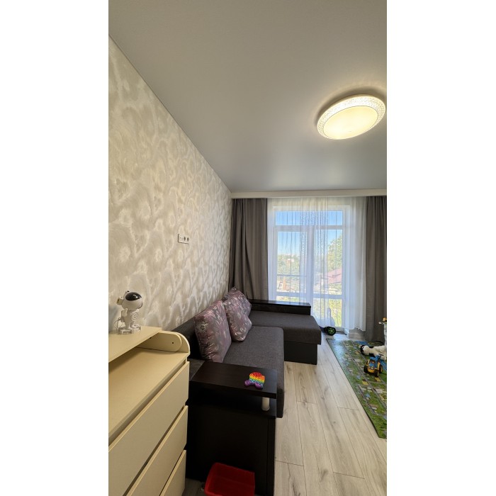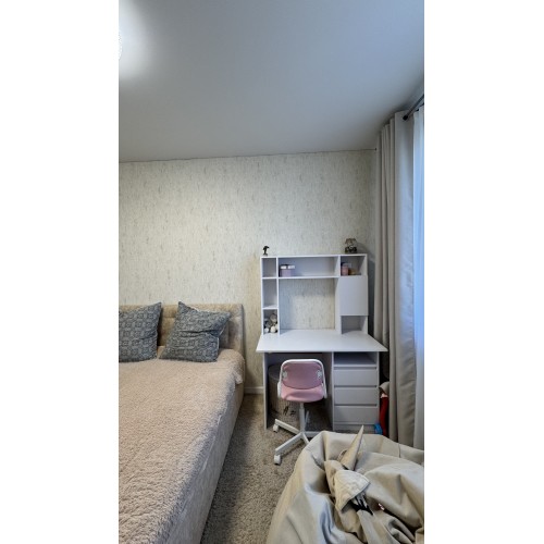Свой отдельный вход, 2 -й этаж, общ.пл 77.6 кв.м, 2 комнаты, гардеробная, просторная кухня - студия площадью 22 кв.м, с/узел в плитке раздельный. По всей площади квартиры полы с подогревом ( кроме комнат).