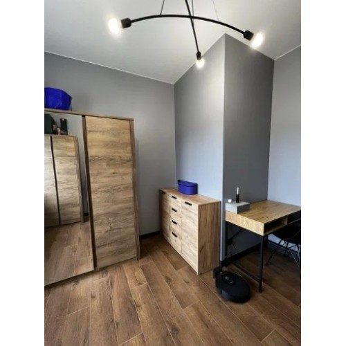 На першому поверсі знаходиться кухня-студія 35м з санвузлом і гардеробом, на другому поверсі - великі дві кімнати з санвузлом